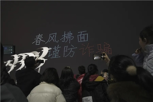 儀式結(jié)束后,一場以反電詐宣傳為主題的一江兩岸和無人機(jī)燈光秀在秋水廣場上演,吸引了廣大市民朋友駐足觀看、網(wǎng)絡(luò)轉(zhuǎn)發(fā),吹響了“春風(fēng)”行動(dòng)的號角。