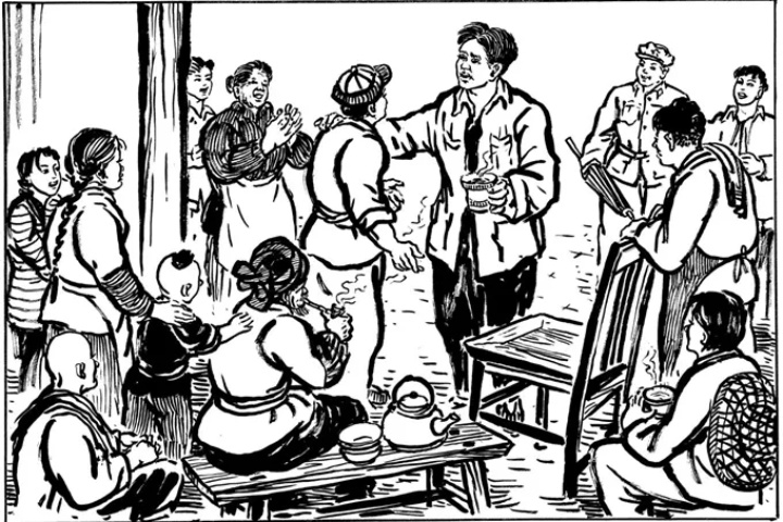 第二天,五連戰(zhàn)士下操之后,連長激動地告訴大家:“毛委員看望我們來了!”象一掛點燃的喜爆,營地里頓時歡騰起來。這時,一個魁梧高大的身影出現(xiàn)在大門口,戰(zhàn)士們一齊擁了上去,一雙雙幸福的眼睛,望著毛委員。毛委員來到營房,戰(zhàn)士們圍坐在毛委員身邊,又激動,又緊張。毛委員親切地問戰(zhàn)士的名字,問在部隊生活的情況,問是不是想家了。當時因經(jīng)常有人患瘧疾,毛委員還問有沒有同志生病,叮囑大家病了一定要醫(yī)治。戰(zhàn)士們開頭有些拘謹,看到毛委員那樣和藹可親、平易近人,氣氛立即變得活躍起來。毛委員拿過一位戰(zhàn)士手中的槍來看了看,稱贊他的槍保護得好,然后向大家分析革命的形勢,講述革命的道理,要大家加強學(xué)習(xí),搞好訓(xùn)練,克服思鄉(xiāng)念頭,鼓足革命勇氣,更好地緊握槍桿子,同反動派進行堅決的斗爭。毛委員還對一個班長說,班長肩上擔子也不輕,帶好十幾個戰(zhàn)士不容易,要關(guān)心戰(zhàn)士,愛護戰(zhàn)士,干部戰(zhàn)士要互相關(guān)心。戰(zhàn)士們聆聽著毛委員的教導(dǎo),感到渾身熱血奔流,坐在毛委員身邊,舍不得離開。直到毛委員走出了好遠,大家還依依不舍地站在那里,久久地凝望著那偉岸高大的背影。