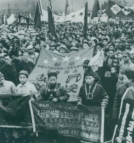 1949年11月15日,貴州解放。圖為苗族同胞向人民解放軍部隊(duì)獻(xiàn)旗。