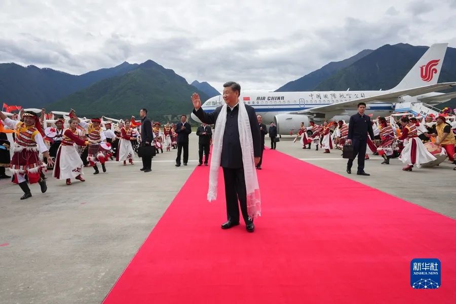 2021年7月21日至23日,中共中央總書記、國家主席、中央軍委主席習(xí)近平來到西藏,祝賀西藏和平解放70周年,看望慰問西藏各族干部群眾。這是21日上午,習(xí)近平乘坐飛機抵達林芝米林機場,西藏各族干部群眾載歌載舞,熱烈歡迎習(xí)近平總書記的到來。