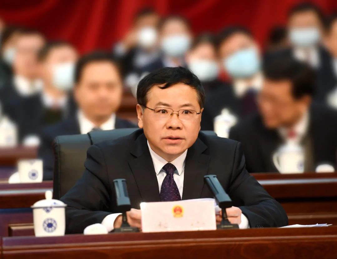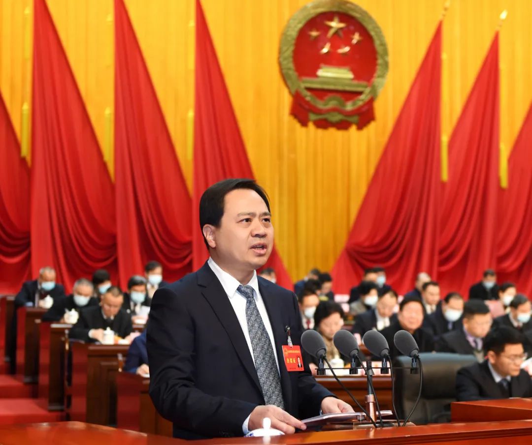 在熱烈的掌聲中,嚴(yán)允代表市人民政府向大會(huì)作政府工作報(bào)告。報(bào)告分兩部分:一、2021年工作回顧;二、2022年工作安排。