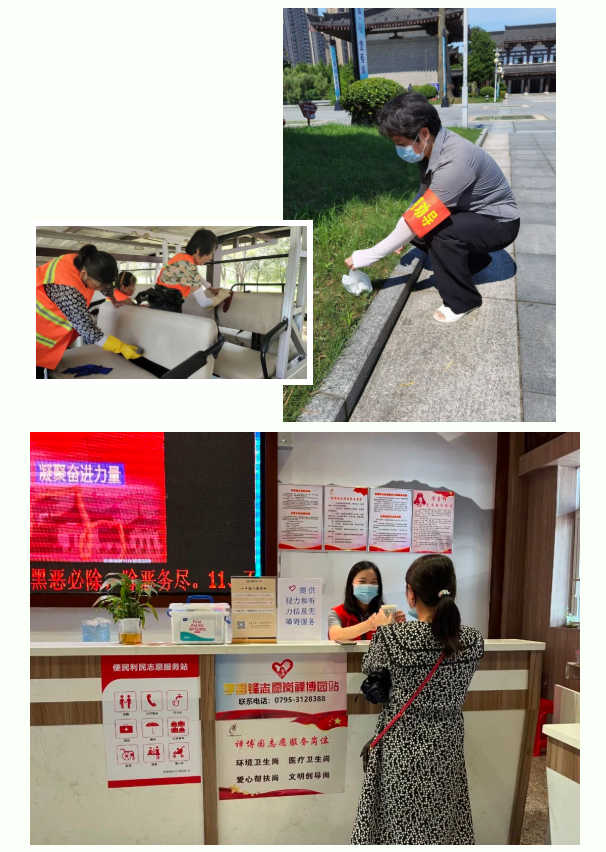 為打造文明旅游景區(qū),助力文明城市創(chuàng)建, 宜春旅游集團轄屬宜春禪都文化博覽園全體員工積極參與一線志愿服務,設立學雷鋒服務點,為游客提供旅游咨詢、文明勸導、嬰兒車寄存、輪椅租借等服務,熱心為游客發(fā)放“園區(qū)導覽圖”“文明禮讓”“創(chuàng)建文明城市”等宣傳資料,通過實際行動帶動更多人參與到文明城市創(chuàng)建工作中來,共同打造良好的生活環(huán)境、共同維護文明城市形象。